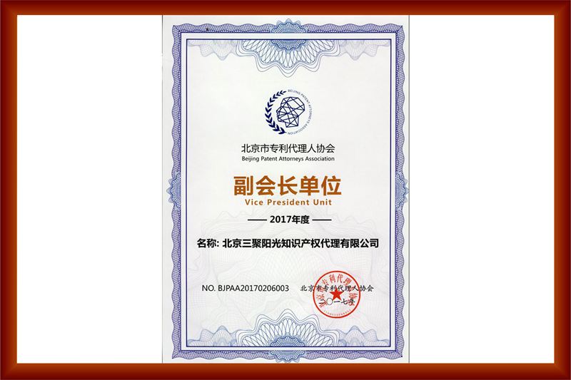 當(dāng)選“北京專利代理師協(xié)會副會長單位”