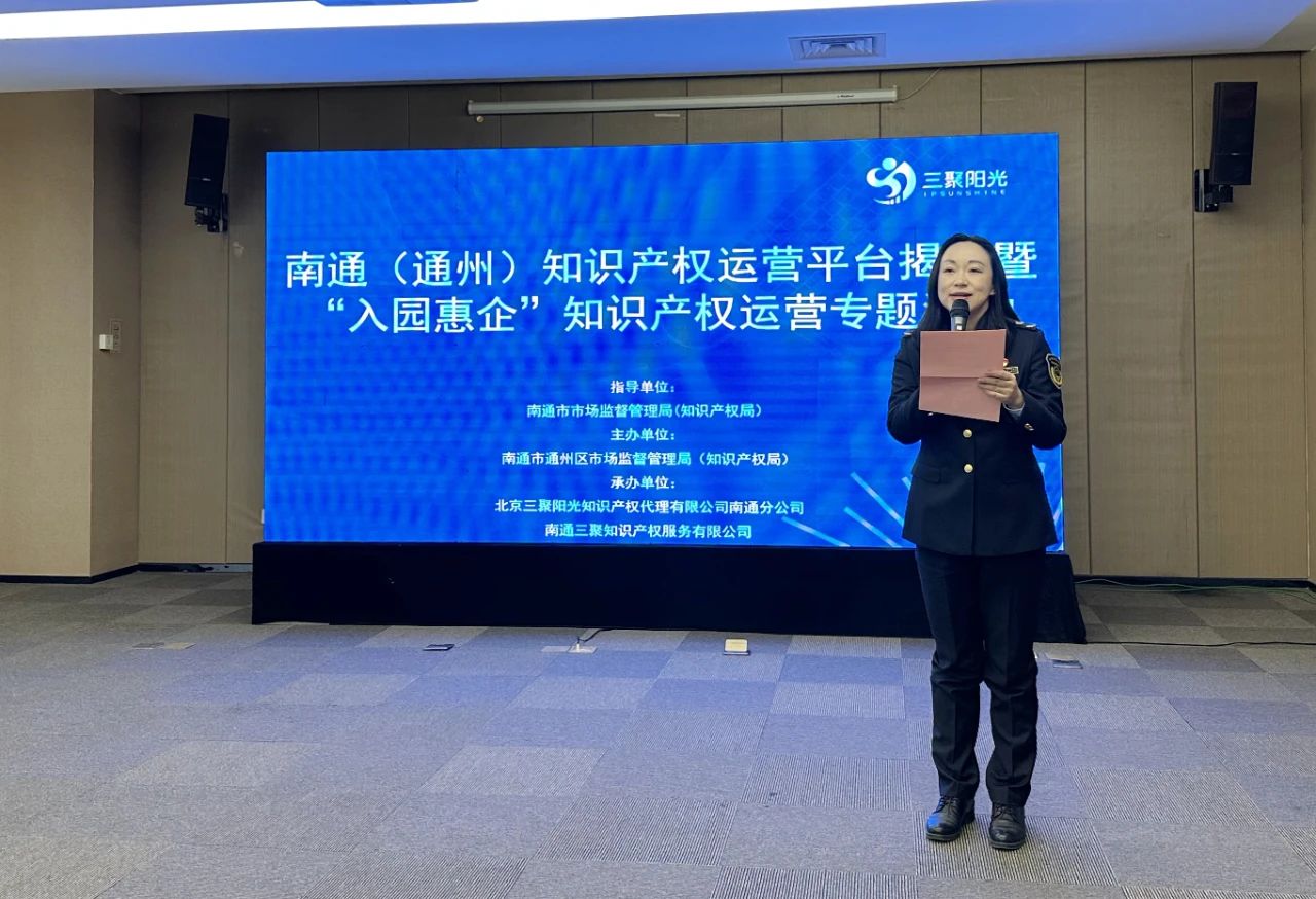 為促進(jìn)知識(shí)產(chǎn)權(quán)與創(chuàng)新發(fā)展深度融合,系統(tǒng)推進(jìn)知識(shí)產(chǎn)權(quán)運(yùn)營(yíng)服務(wù)體系建設(shè),促進(jìn)高校院所、企業(yè)和服務(wù)機(jī)構(gòu)“三方聯(lián)動(dòng)”,創(chuàng)新體制機(jī)制,激發(fā)創(chuàng)新活力,推動(dòng)專利技術(shù)高效轉(zhuǎn)化實(shí)施,讓創(chuàng)新成果更好惠及南通市通州區(qū)發(fā)展,3月17日,南通市市場(chǎng)監(jiān)督管理局(知識(shí)產(chǎn)權(quán)局)、南通市通州區(qū)市場(chǎng)監(jiān)督管理局(知識(shí)產(chǎn)權(quán)局)聯(lián)合南通三聚知識(shí)產(chǎn)權(quán)服務(wù)有限公司舉辦南通(通州)知識(shí)產(chǎn)權(quán)運(yùn)營(yíng)平臺(tái)揭牌暨“入園惠企”知識(shí)產(chǎn)權(quán)運(yùn)營(yíng)專題活動(dòng)。