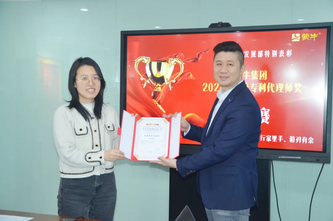 1月2日,蒙牛集團全球研發(fā)創(chuàng)新中心專利發(fā)展部總監(jiān)何萬興博士一行到訪三聚陽光,授予三聚陽光“最佳專利代理伙伴”榮譽,頒發(fā)“2024年專利卓越商務(wù)運營官”榮譽給三聚陽光常務(wù)副總裁李敏,并頒發(fā)“專利商務(wù)達人”“優(yōu)秀專利代理師”榮譽給多位代理師,以表彰三聚陽光在專利代理和商務(wù)運營中的卓越表現(xiàn)。