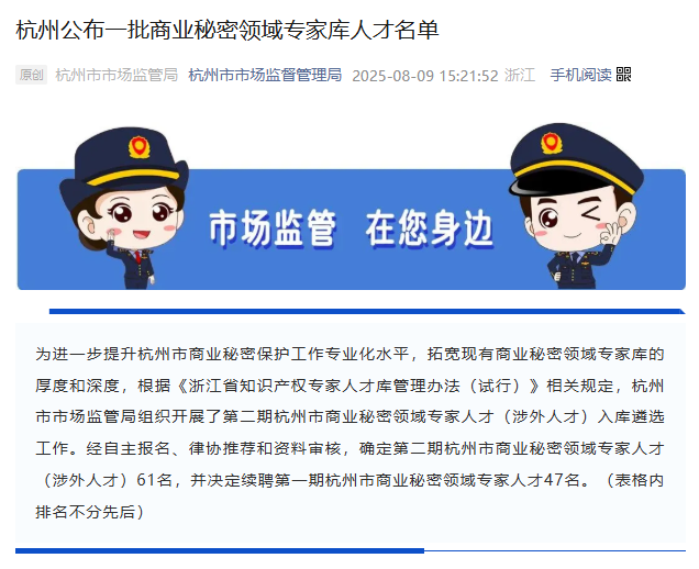 近日,杭州市市場(chǎng)監(jiān)督管理局發(fā)布《第二期杭州市商業(yè)秘密領(lǐng)域?qū)<胰瞬牛ㄉ嫱馊瞬牛┤霂?kù)名單》通知,并同步公布“續(xù)聘第一期專(zhuān)家名單”。其中,三聚陽(yáng)光總裁張建綱與法律業(yè)務(wù)負(fù)責(zé)人周美華續(xù)聘在列。