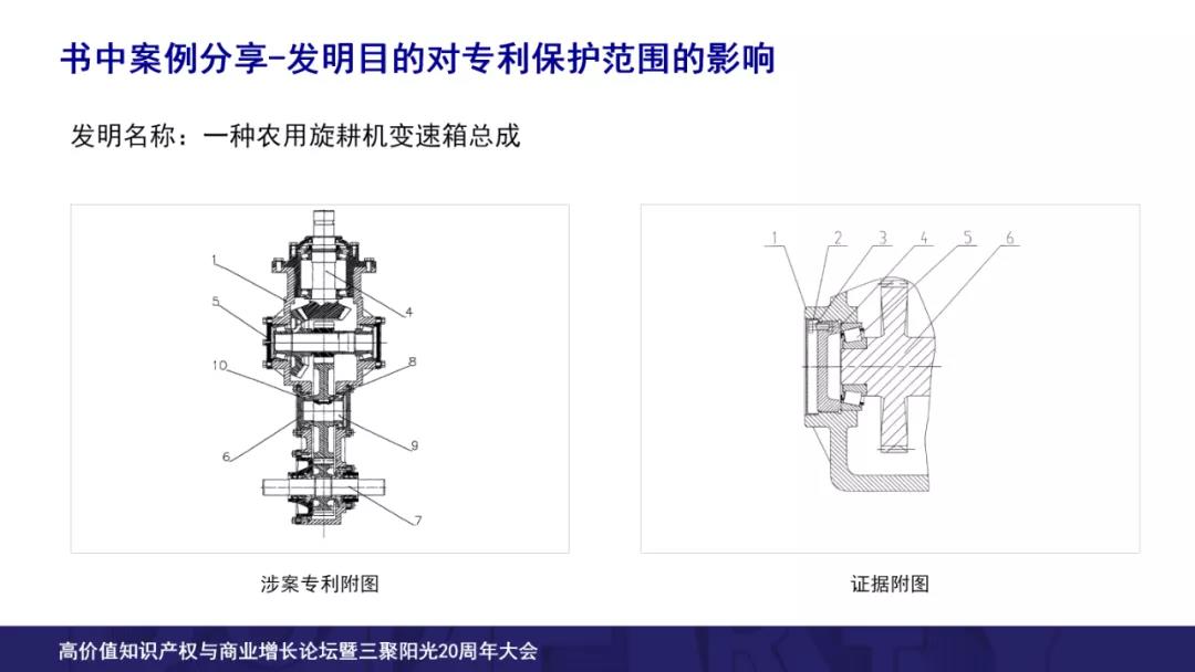 涉案專利要求保護一種農用旋耕機的變速箱總成,雙方焦點權利要求的技術特征,“三軸壓蓋位于箱體殼兩側”,請求人認為因為專利中沒有記載是在兩內側還是外側,所以權利要求的保護范圍應該包括內側和外側,而其認為證據中公開了兩內側的技術方案,所以證據中公開了上述特征,而專利權人并不這樣認為。專利權人認為根據專利的發(fā)明目的,它的背景技術明確記載了解決的技術問題就是針對和現在的證據一樣的三軸壓蓋位于箱體殼內側的技術方案。