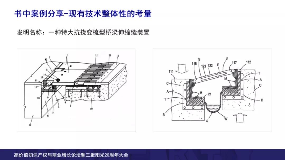 那么本書通過近十個案例層層剖析,向讀者解讀如何通過現有技術以及涉案專利不同的角度考慮整體性問題,我們來看港珠澳大橋的伸縮性專利的案例。